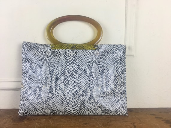 1970s Snakeskin Tote Bag With Mod Oval Tortoise Handle Gray Etsy